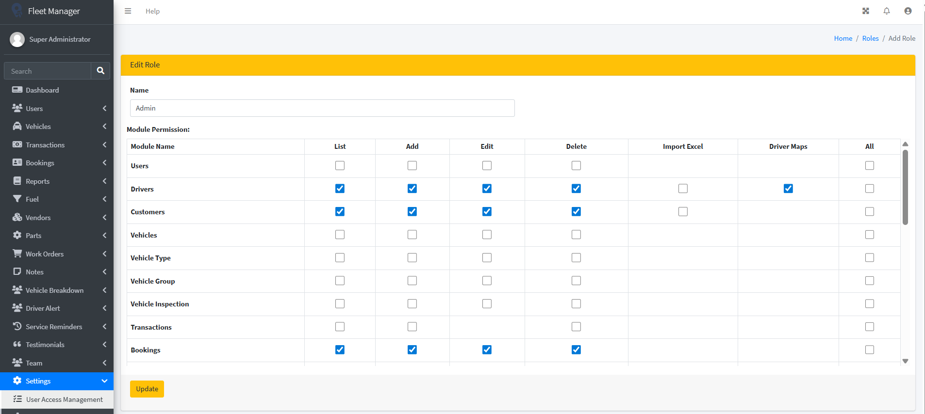 Admin has the flexibility to modify roles and adjust permission types according to their specific requirements.