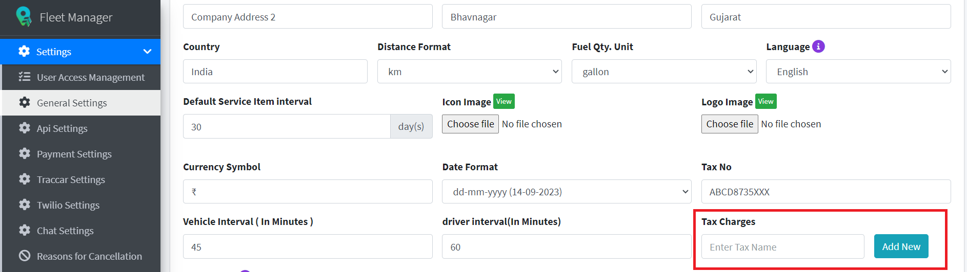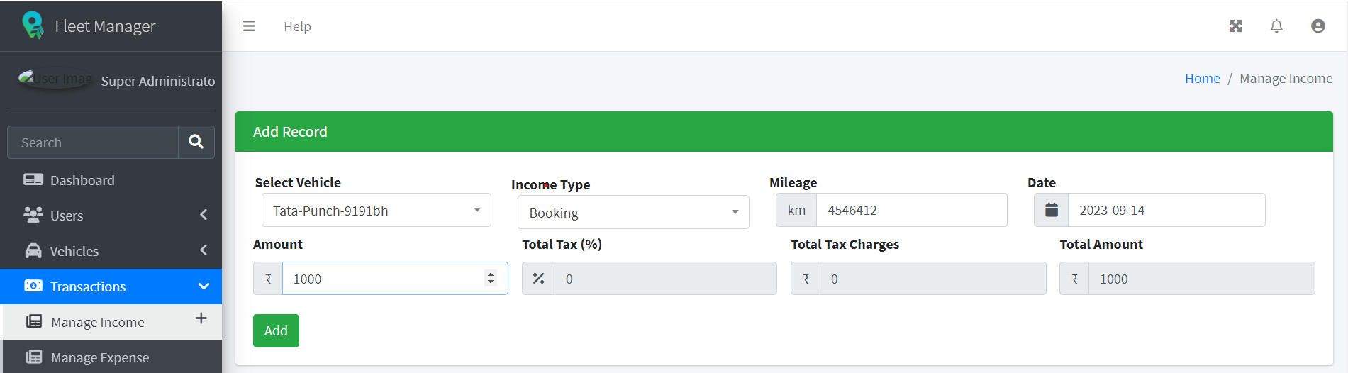 Enter the Mileage of the Vehicle in Km.
