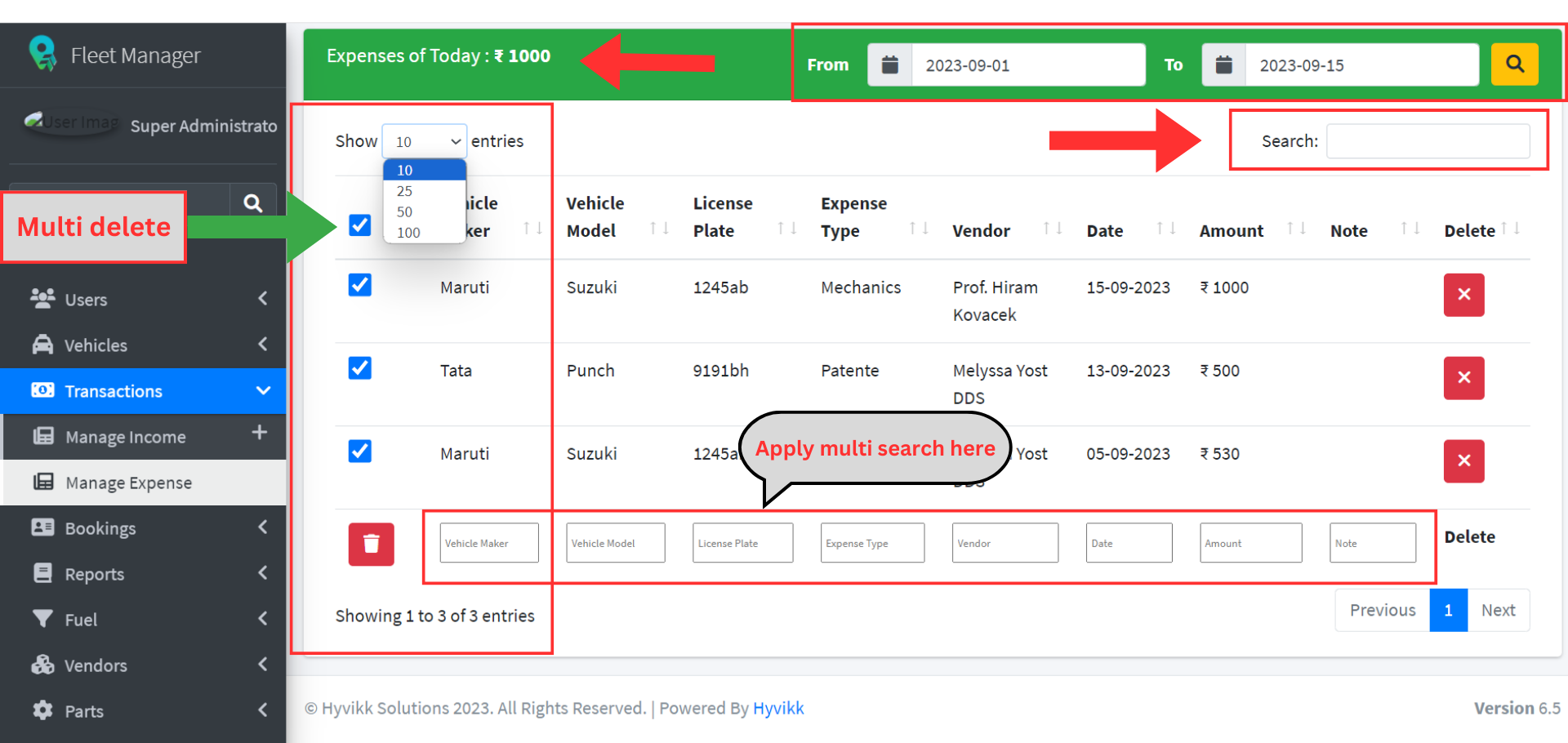 o User can delete the single and multiple expense records as per the requirement.