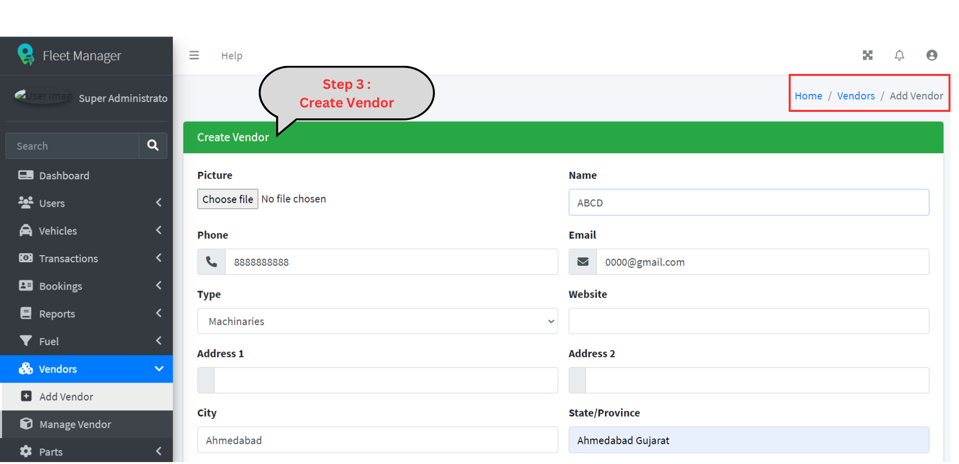 Step 3 - Select Vendor type.